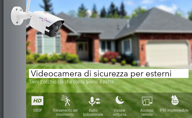 Al giorno d’oggi possiamo tenere sotto stretta sorveglianza il giardino , piazzale. sfruttando sistemi di videosorveglianza senza per l’esterno, in grado di inviare le immagini tramite connessione Wi-Fi e avvisare in caso di intrusione.